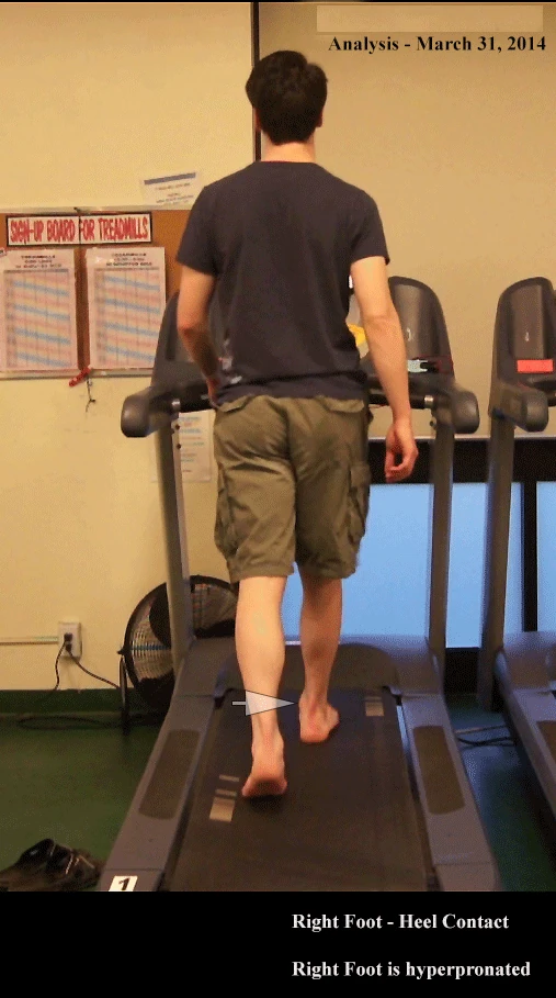 2) At midstance the foot remains maximally pronated (See White Arrow - Right Foot, Frame 00:09)